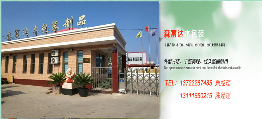 定興縣森富達木包裝制品有限公司,主要產品:木托盤、木包裝、出口托盤、出口免熏蒸木箱等。能出據出境貨物木質包裝除害處理標識加施防偽熏蒸證明。該產品采用優(yōu)質硬木材料,確保托盤品質,外型光潔、平整美觀、經久堅固耐用,托盤使用周期長,安全穩(wěn)定,具有承載量大,成本低,無蛀蟲等特點。適用范圍:物流、機械電子等行業(yè),我們的產品外形美觀,質量可靠。交貨及時講究信譽。有生產和經濟上的實力。我們的產品已先后出口到美國、韓國、印度、意大利、俄羅斯及眾多國家。得到了國內外客戶的廣泛贊譽與認可。咨詢熱線:15930439758 陳經理